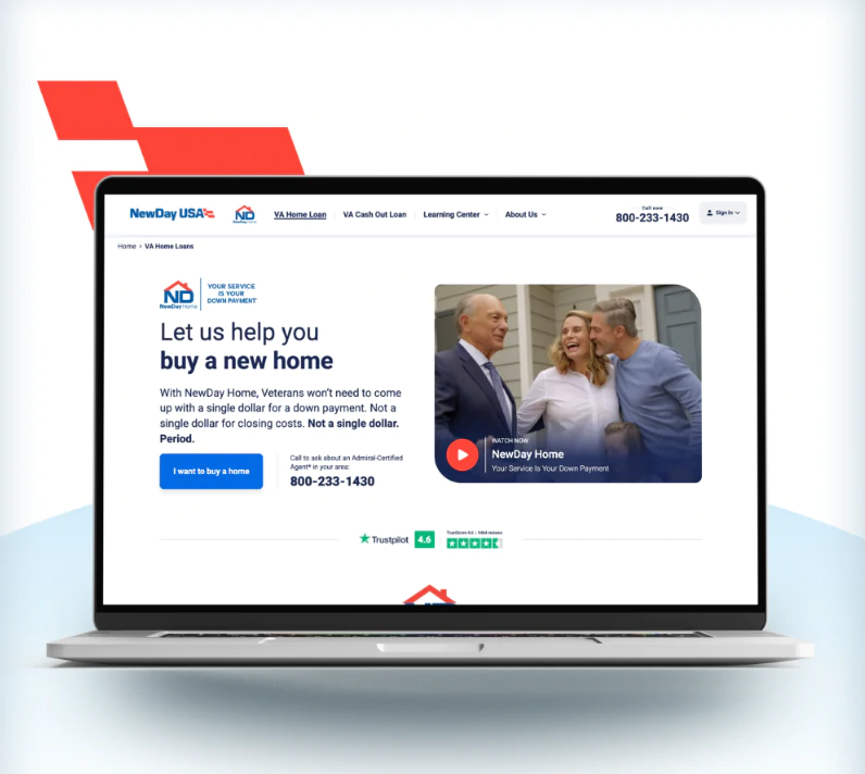 NewDay USA needed to reimagine its digital presence to better serve veteran families as they navigate one of the most important financial decisions of their lives. Two separate platforms, NewDay Home and NewDay 100, needed to be unified into a single cohesive experience, built with accessibility, clarity, and ease of use in mind, particularly for a customer base with a significant number of customers over 60. NewDay also wanted to establish itself as an educational resource and long-term digital leader in veteran lending.